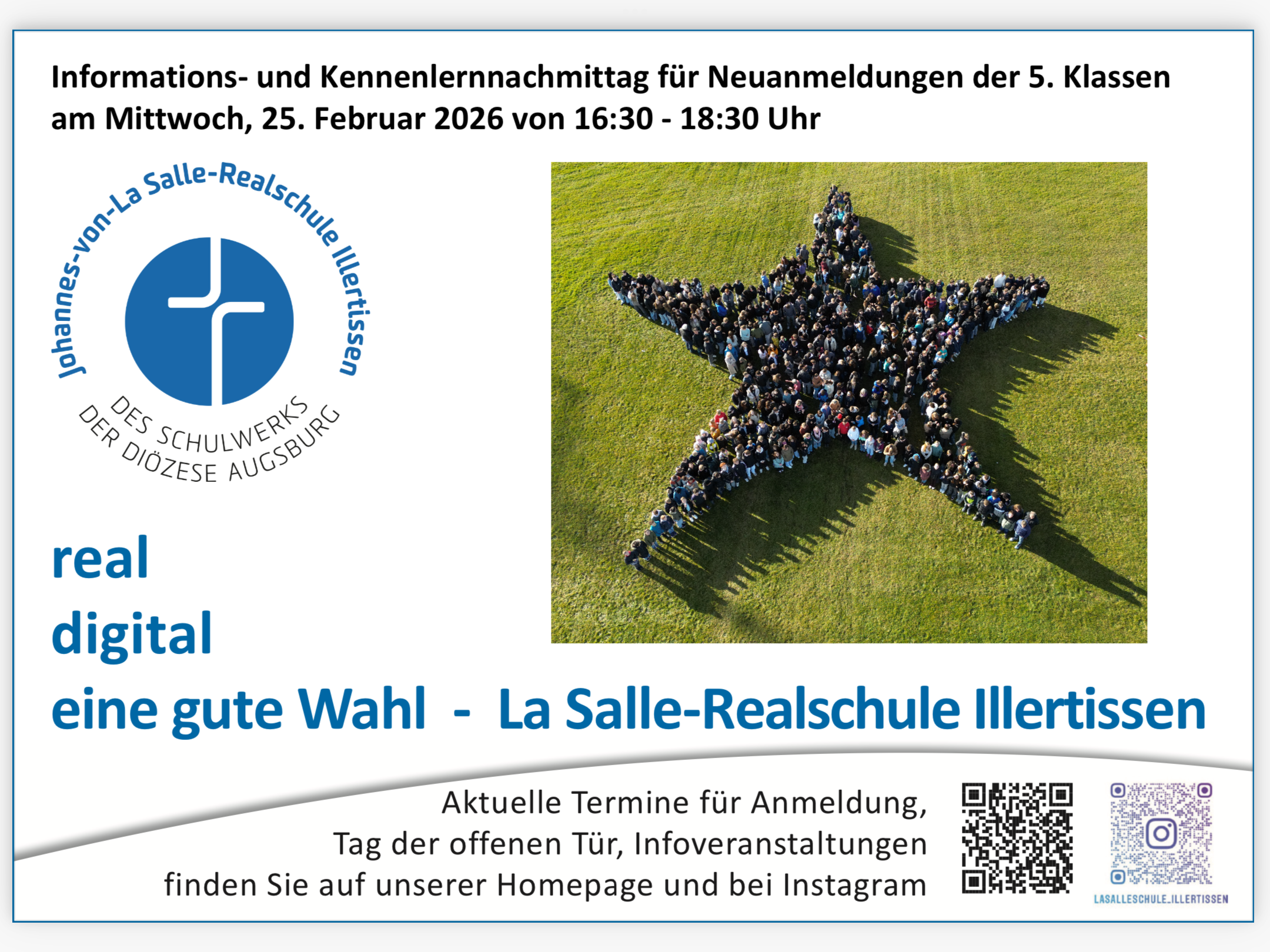 Lerne die Realschule Illertissen am 1. März 23 von Innen kennen!