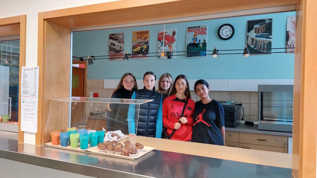Zum Start des neues Schuljahres konnte der Bereich beim Pausenverkauf aufgewertet werden. Angeschafft wurden stabile und optisch ansprechende Hocker, Hochbänke und Hochtische. Die Finanzierung der neuen Möbel erfolgte dankenswerter Weise komplett durch unseren Elternbeirat. Auf dem Foto freuen sich Frau Wiker-Wohlhöfler und Frau Gleixner vom Elternbereit (links), die Schulleitung mit Frau Mayer und Herrn Hubert (rechts) und einige Schülerinnen und Schüler der 9c über das schicke neue Mobiliar. › Details ausblenden