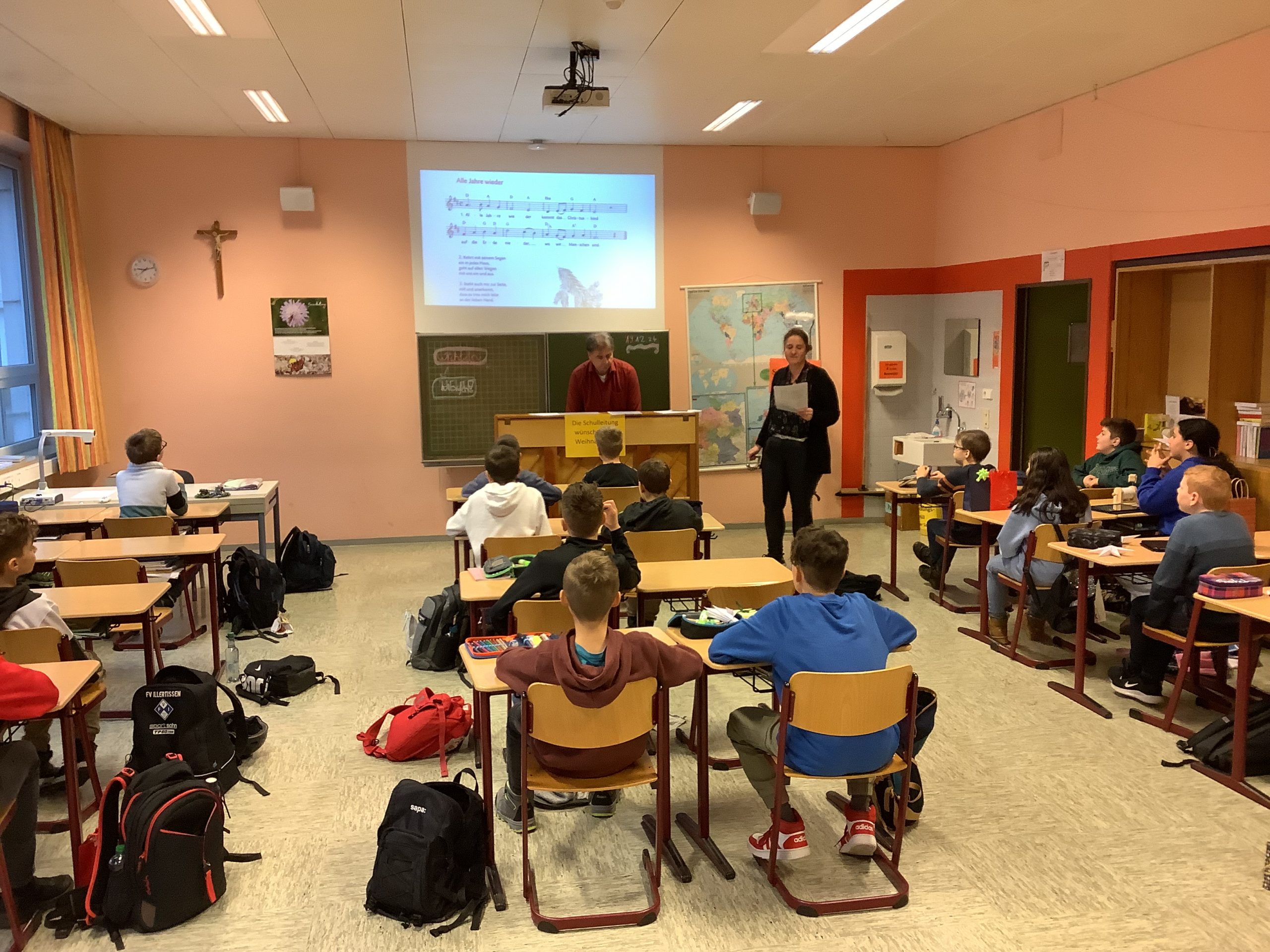 Herzlich willkommen zurück, liebe Schülerinnen und Schüler und herzlich willkommen bei uns, liebe Fünftklässlerinnen und Fünftklässler! Mit einer kleinen Feierstunde begrüßten wir heute unsere Neuen mit Geschenken und Musik, die Fairtrade-AG, die Bustutorinnen, die OGTS und die Schulleitung stellten sich den Kindern und Eltern vor. Wir wünschen euch allen ein gesundes, freudiges und erfolgreiches Schuljahr, Gottes Segen begleite euch!