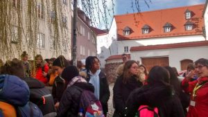 Um Bayern noch ein wenig besser kennenzulernen, stand als Ausflugsziel für Samstag die Stadt Augsburg auf dem Programm. Dort angekommen erhielten unsere französischen Gäste im Fugger und Welser Erlebnismuseum erste wichtige Informationen zu diesen beiden berühmten Augsburger Kaufmannsfamilien. Nach der Mittagspause – zum ersten Mal diese Woche kam sogar wie bestellt die Sonne durch die Wolken – ging es weiter zur Fuggerei, der ersten Sozialsiedlung der Welt. Diese einmalige Einrichtung beeindruckte nicht nur unsere Pariser Gäste, sondern auch unsere deutschen Schüler.