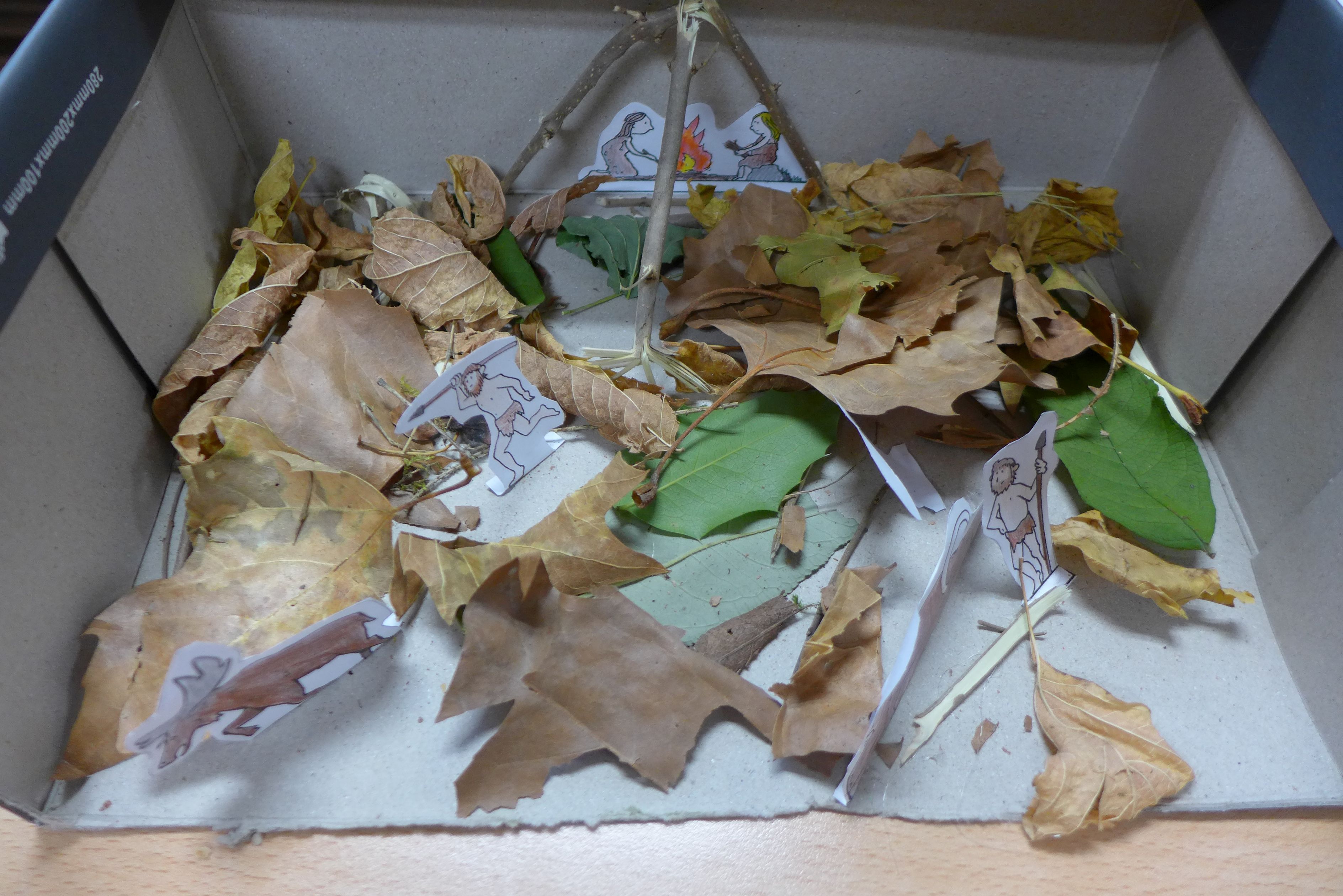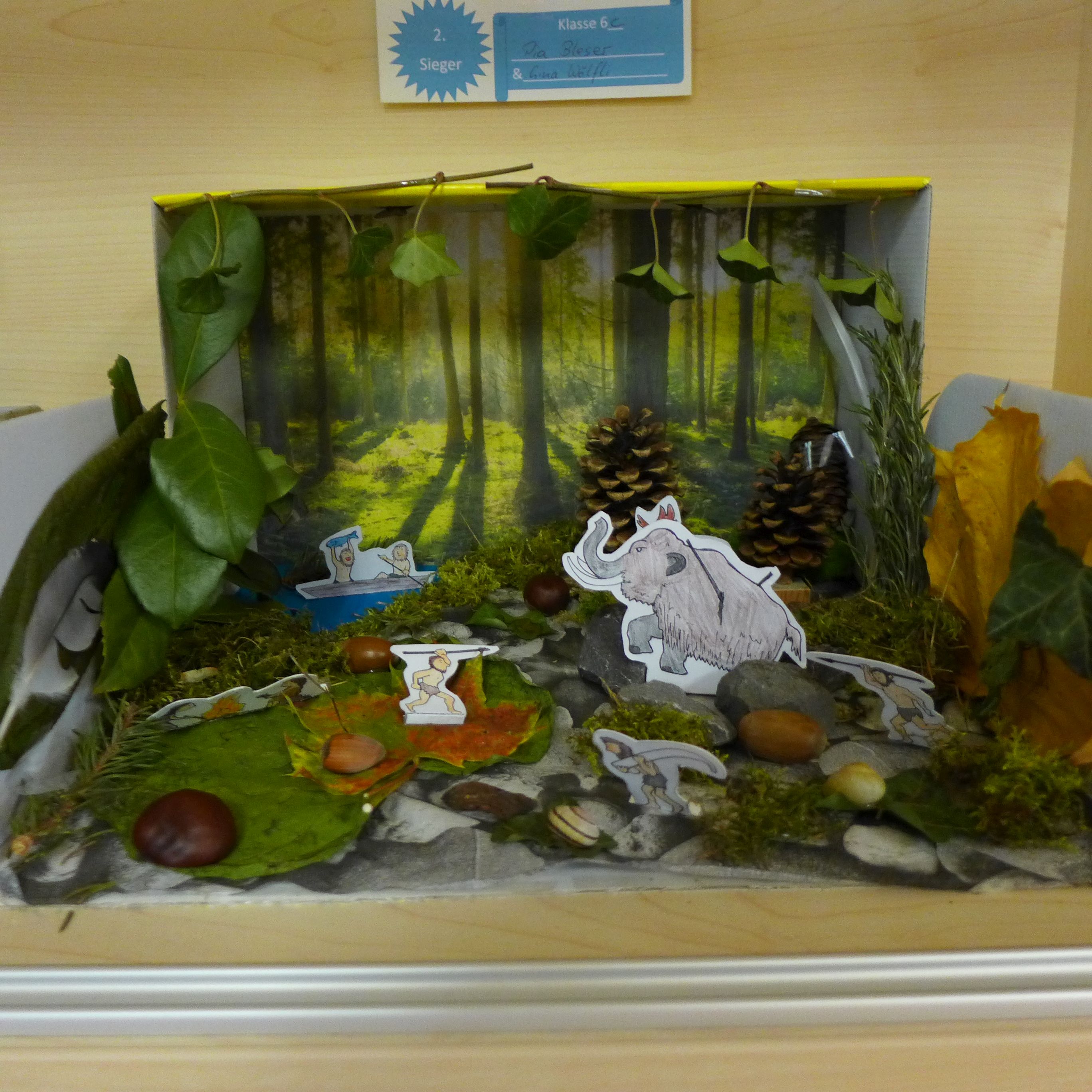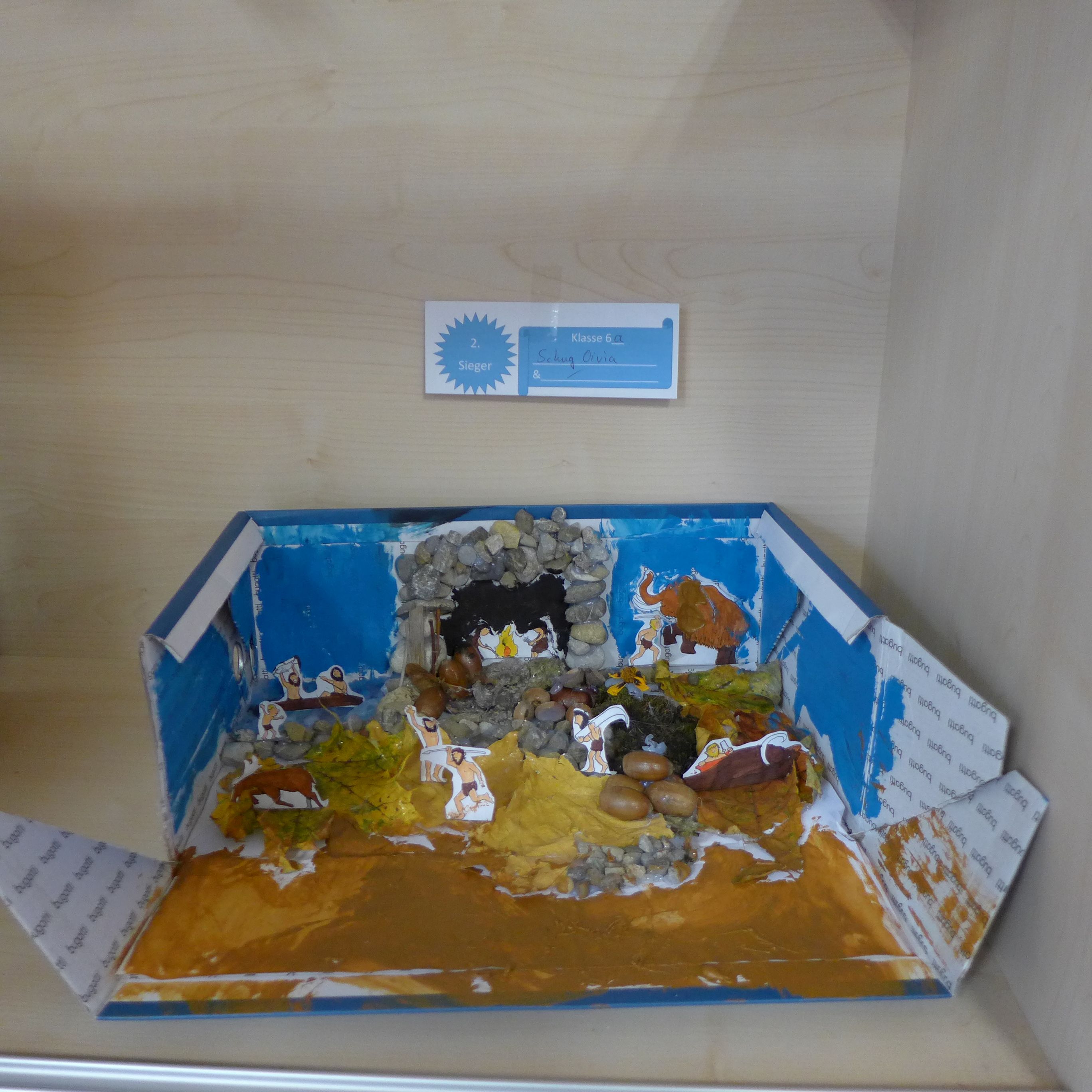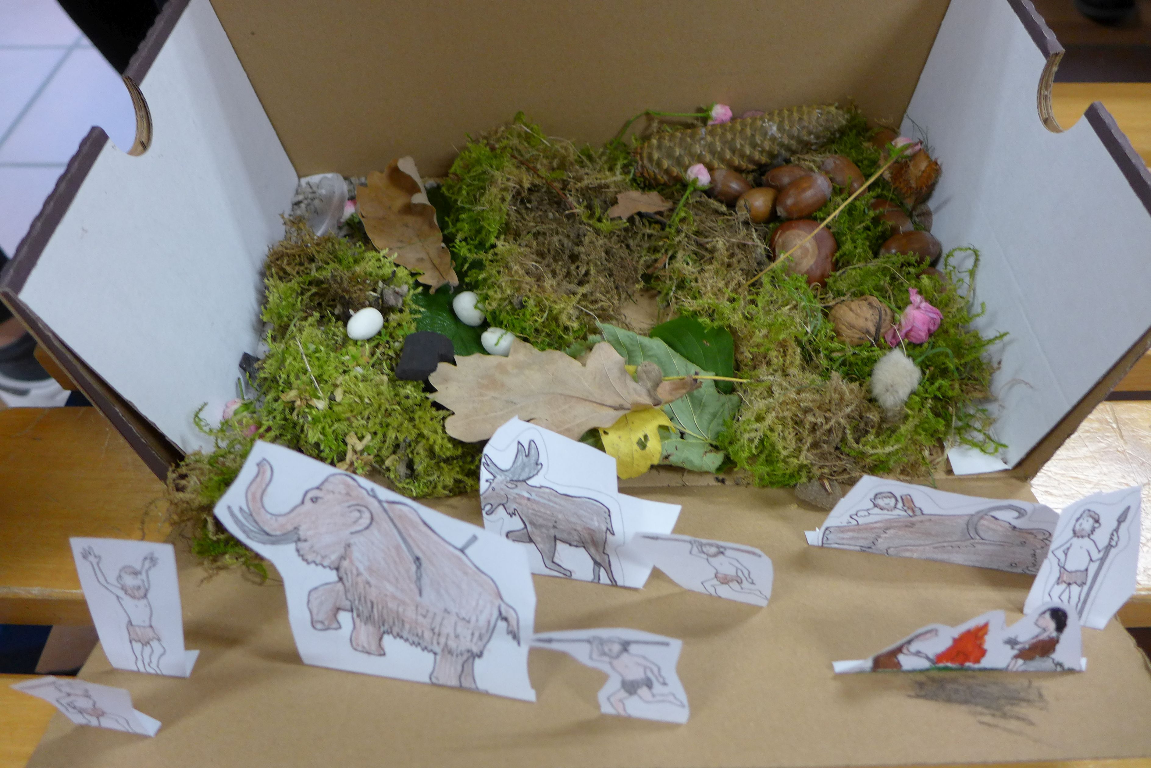 In einem dreistündigen Miniprojekt sollten die Schülerinnen und Schüler der sechsten Klassen im Fach Geschichte die Jagdszene durch das Darstellen einer Altsteinzeitlichen Jagdszene in einem Schuhkarton („History in a box“) weitererzählen.