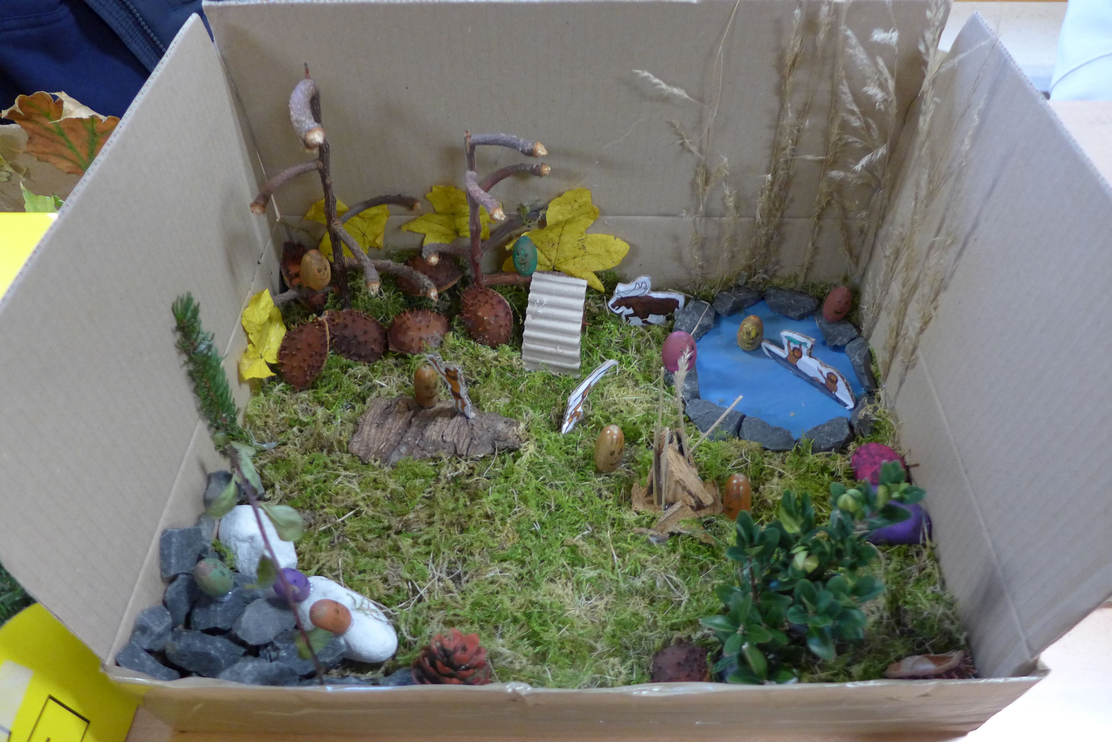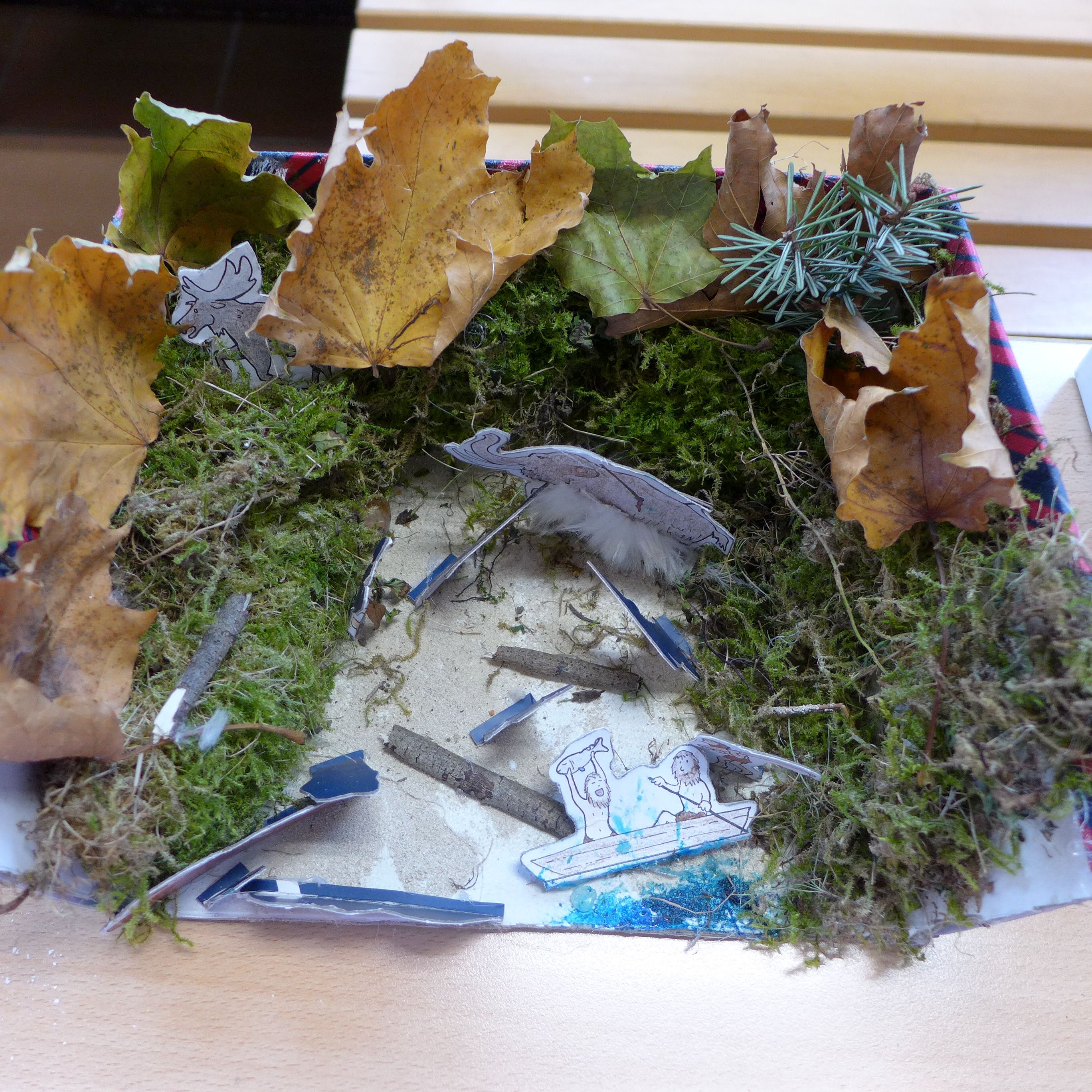 Dabei standen ihnen lediglich die Vorlagen der Menschen und Tiere zur Verfügung. Den Rest durften sie nach ihren Vorstellungen und Phantasien gestalten. Auch eine Unterrichtsstunde an der frischen Luft, in der die Schülerinnen und Schüler Naturmaterialien sammelten, gehörte zum Projekt.