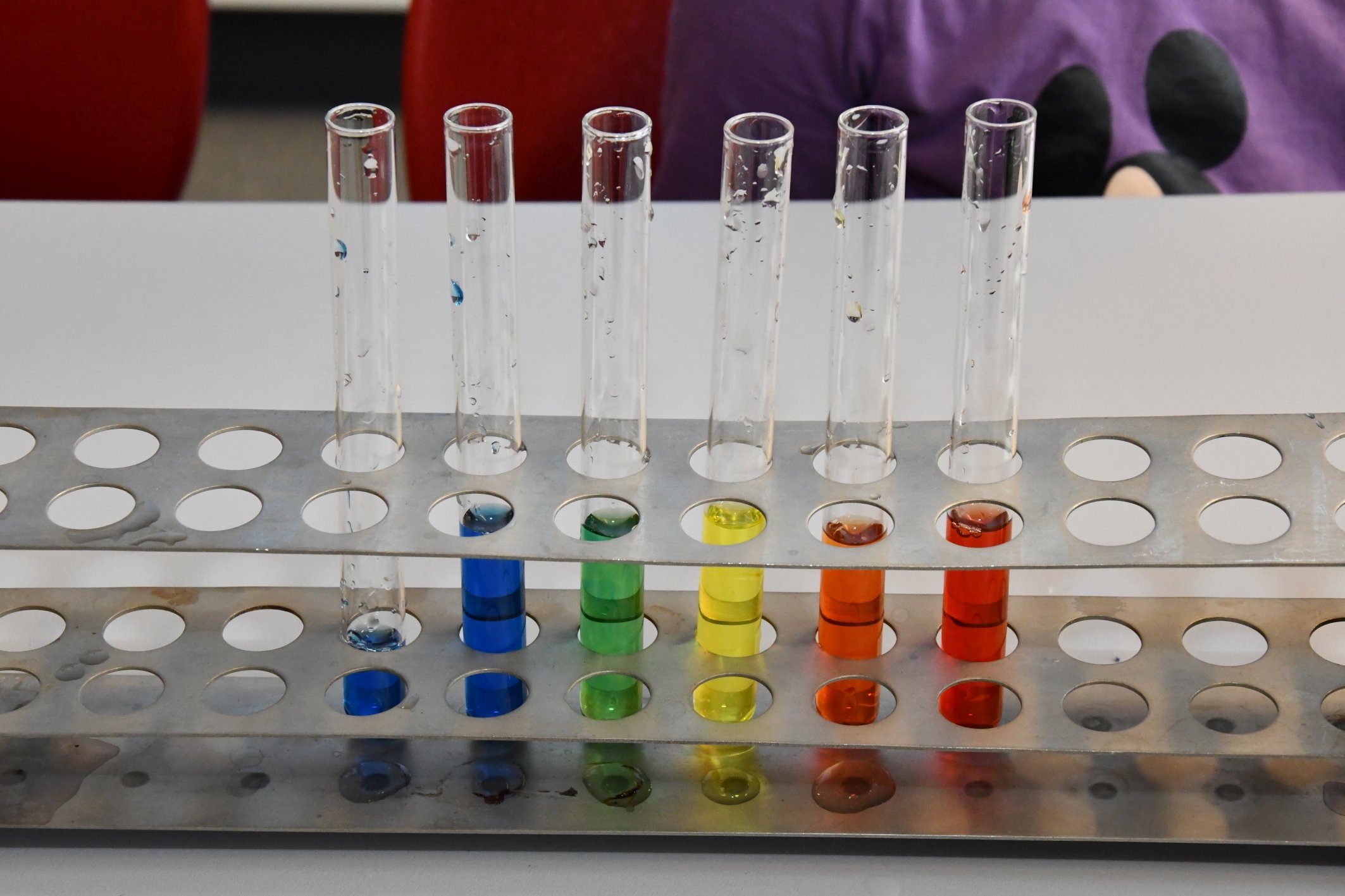 Im Anschluss stand ein Besuch bei der BASF Illertissen auf dem Programm. Frau Schötta, die Ausbildungsleiterin der Firma, erklärte den Gästen die Anforderungen an die Auszubildenden in den Berufen Chemielaborant und Chemikant in der Theorie. Danach gab es eine Führung durch die Labors und die Produktion – ganz stilecht mit Schutzausrüstung: Mantel, Helm und Brille.