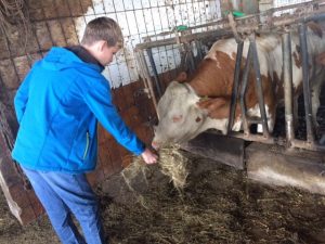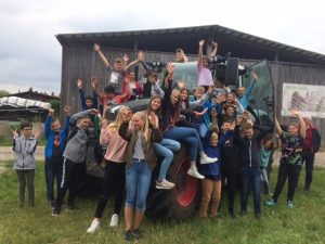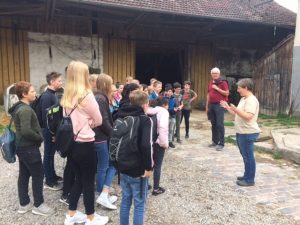 Die Klasse 6b besuchte am Montag, 08.07.2019 gemeinsam mit ihren Lehrern Herr Klar und Frau Mangold-Köder den Bauernhof der Familie Ade in Gerlenhofen. Im Rahmen des Projekts „Landfrauen machen Schule“ des Bayerischen Bauernverbandes können Schulklassen sich mit den Themen gesunde Ernährung, regionale Lebensmittel und Lebensmittelherstellung beschäftigen. Die Schüler bekamen rund um das Thema Milch umfassende Informationen und durften auch selbst in Aktion treten. Kälbchen, aber auch die großen Kühe durften gestreichelt und gefüttert werden. Auch eine Heuschlacht durfte natürlich nicht fehlen. Die Schüler erfuhren, dass viele Abläufe auf dem Hof heutzutage vollautomatisch ablaufen, wie z.B. durch die Melkmaschine oder Säuberungsanlagen. Am Ende durften die Schüler zur großen Freude noch Rohmilch und Joghurt probieren. Auch hier wurde ihnen der Unterschied zur Milch aus dem Supermarkt (pasteurisiert, homogenisiert) schülergerecht erklärt. Wir bedanken uns bei Familie Ade für den gelungenen und abwechslungsreichen Vormittag!