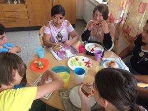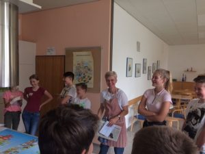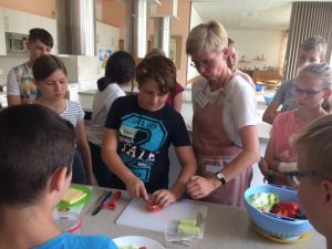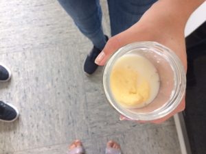 Am Dienstag, 09.07.2019 folgte der zweite Teil des Projektes „Landfrauen machen Schule. Die staatl. geprüfte Oecotrophologin Frau Andrea Wenzel kam in der 3. und 4. Stunde zu uns in die Schulküche und vermittelte der Klasse 6b die Grundlagen einer gesunden Ernährung nicht nur theoretisch anhand der Ernährungspyramide, sondern die Schüler durften selbst tätig werden. Anknüpfungspunkt vom Bauernhofbesuch am Vortag war das Thema Milch. Die Schüler erlebten praktisch, wie man aus Sahne Butter schütteln kann, die dann später auf das selbst zubereitete Sandwich gestrichen wurde. Auch das entstandene Nebenprodukt, die Buttermilch, konnte gekostet werden. Ein herzliches Dankeschön an den Bayerischen Bauernverband und den Landkreis Neu-Ulm, die dieses Projekt möglich gemacht haben!