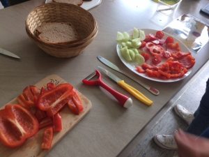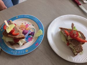 Herstellen eines gesunden Pausensandwiches in der Schulküche