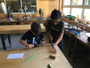 In einer kleinen Präsentation wurden den Schülerinnen und Schülern die Firma und der Ausbildungsberuf des Zerspanungsmechanikers vorgestellt. Aber danach ging es gleich in den Werkraum zum praktischen Arbeiten: An Stahl, Aluminium und Messing wurde richtiges Feilen geübt und ganz nebenbei die Materialeigenschaften erarbeitet. In dieser offenen Atmosphäre kamen viele kleinen Gespräche zustande und die Zeit verging wie im Flug. Selbst unruhige Schüler konnten sich hier von ihrer besten Seite zeigen und am Ende fasste schon mancher Fünftklässler den Plan, sich nach seinem Schulabschluss bei der Firma Miller zu bewerben.