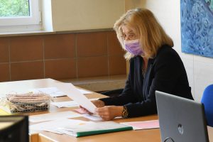 Frau Nodin leitet die Konferenz vorbildlich mit Mund-Nasenschutz und erläutert das Hygienekonzept: