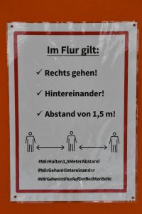 Beim Betreten der Schule bitte Abstandsregeln (1,5 Meter) einhalten,