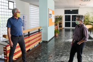 … und im Flur gibt es Zeit für Gespräche – selbtsverständlich unter Corona-Bedingungen!