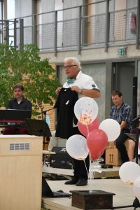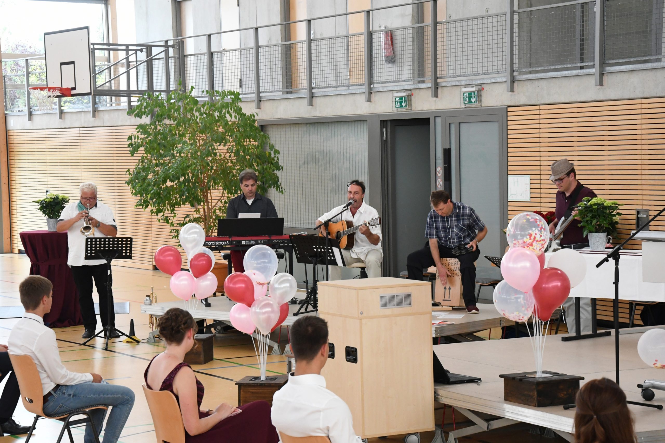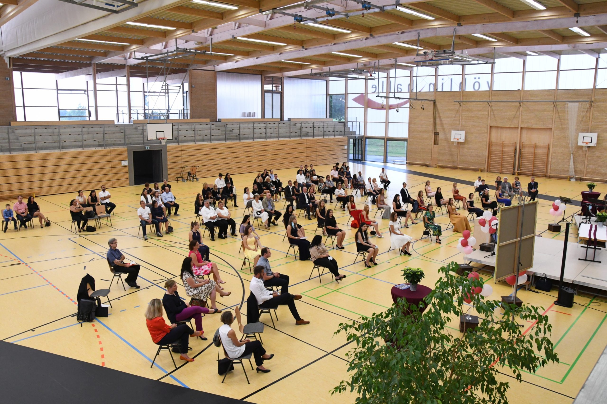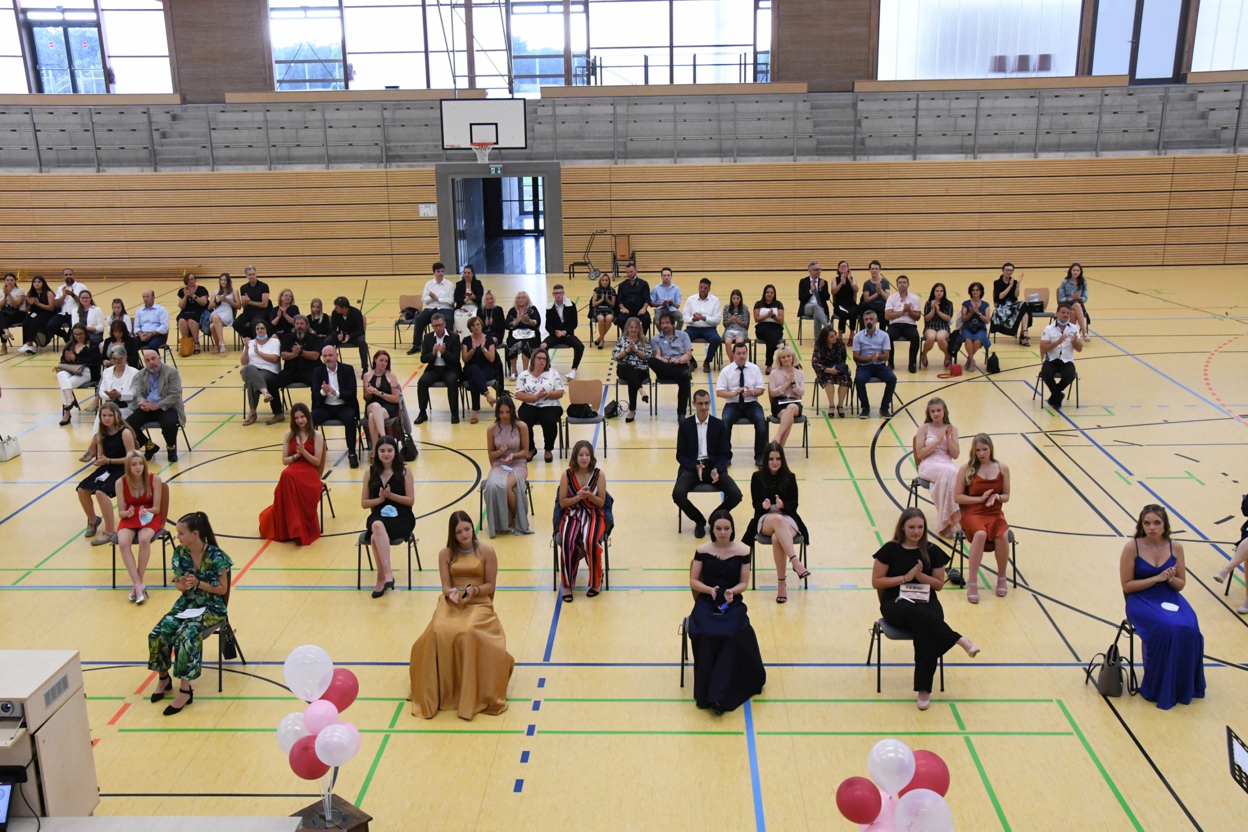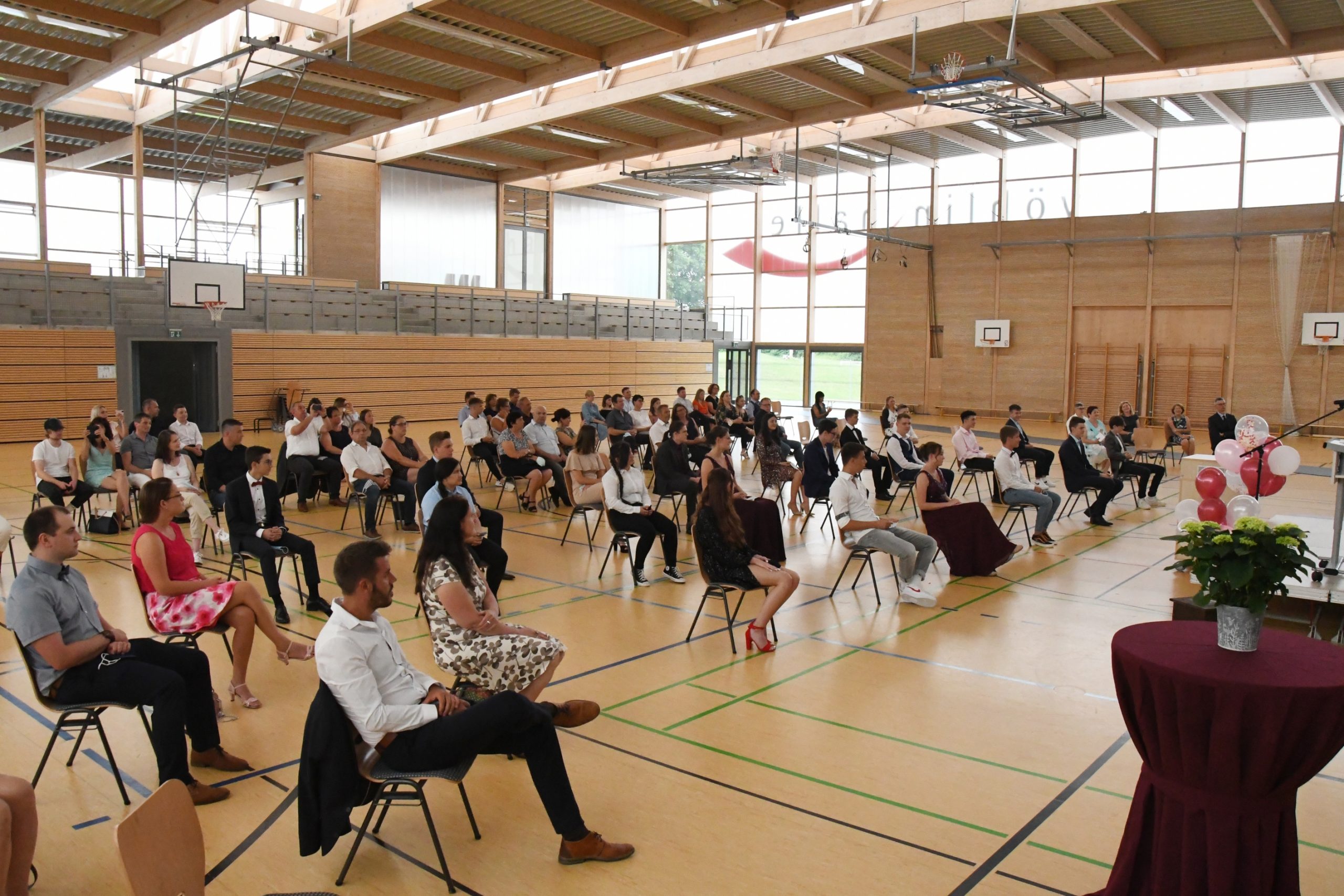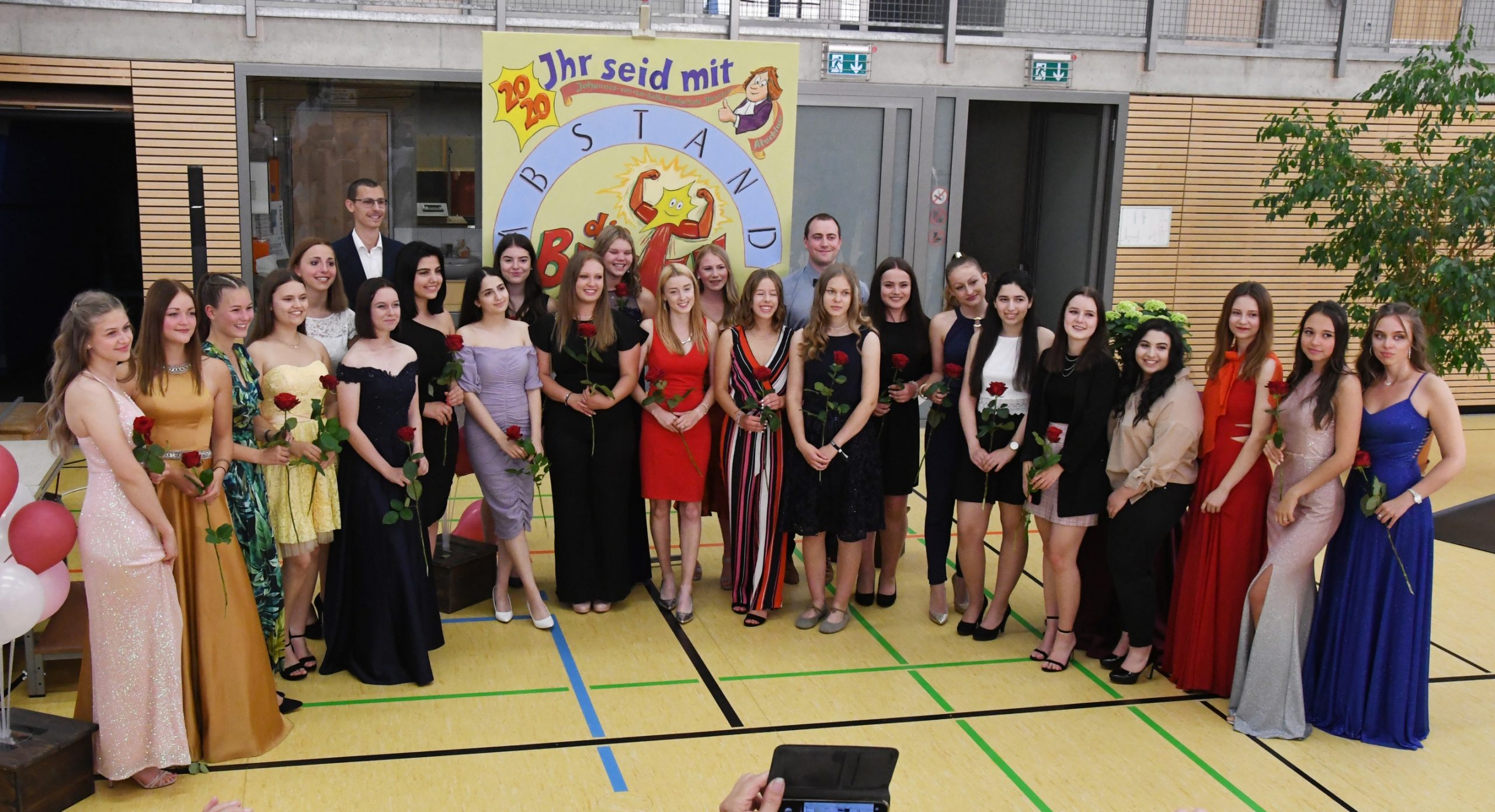 Klassenweise wurden dieses Jahr unsere 65 Absolventinnen und Absolventen in der Vöhlinhalle verabschiedet. Lehrkräfte, Elternbeirat und die Schulleiterin Roswitha Nodin organisierten für ihre scheidenden Schülerinnen und Schüler eine bewegende Abschiedsfeier. 14 Belobigungen mit einer Note 1 vor dem Komma sind eine sehr gute Bilanz.