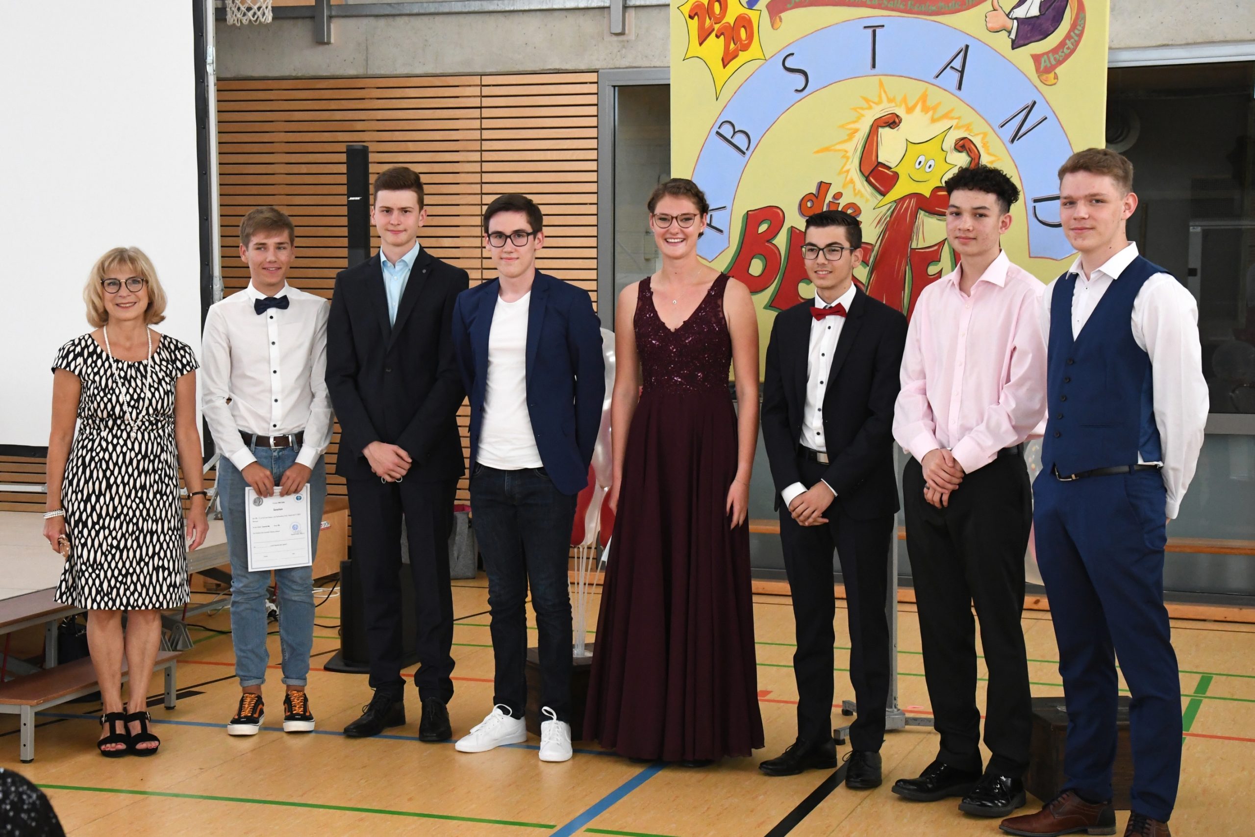 Klasse 10 a Klassenbester Nils Emmrich, gefolgt von Simon Pfister, Moritz Hander, Elias Merk, Elisa Küffel Kevin Niederbacher, Niklas Müller