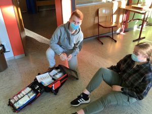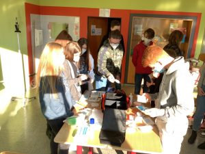 Beim ersten Schulsani-Treffen 2022 wurde dann auch gleich mit großer Neugier der Inhalt des Sanitätsrucksacks inspiziert.