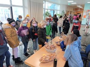 Die Klasse 10C wartete in der Pause mit pains au chocolat, petits chinois und briochettes…