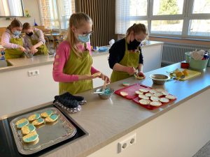 Die Catering-AG hat leckere „Ukrainer“ gebacken, die am 15. März reißenden Absatz bei Schülerinnen, Schülern und Lehrkräften fanden. Die Einnahmen kommen den Menschen in der Ukraine zugute.