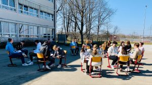 „I‘d like you to pretend that you don‘t know each other. Ask questions to find out as much information as possible about each other.“ Wie jedes Jahr im März befinden sich unsere fleißigen 10.Klässler derzeit in der Vorbereitung zum Speaking Test. Was bietet sich da mehr an, als ein „Speak Dating“ in der Sonne zu haben??? Good luck for the final exams! S. Stein