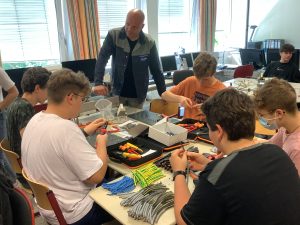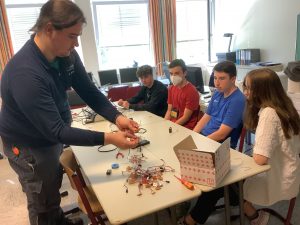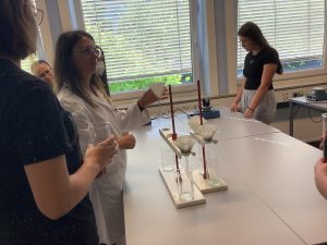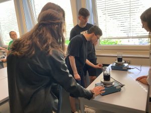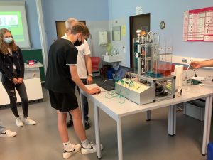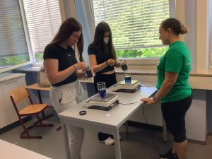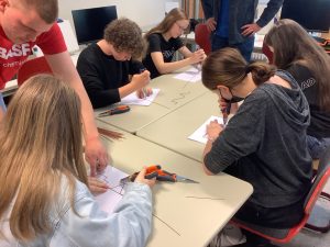 Am 20 Mai waren Ausbilder und Auszubildende der BASF Illertissen zu Gast im Unterricht der Klassen 9a und 9b. Die Ausbilder Herr Ruf, Frau Marz und Herr Schumacher stellten, unterstützt von ihren aktuellen Auszubildenden, die Berufsbilder Chemikant, Laborant Elektroniker und Industriemechaniker in tollen Mitmachaktionen vor.