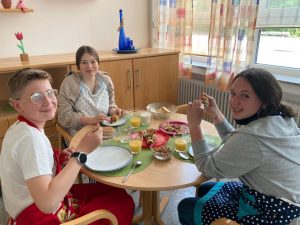 Im Rahmen des Unterrichts in Ernährung und Gesundheit und in Kooperation mit der Fairtrade AG bereiteten die Schüler und Schülerinnen der 7b heute ein faires Frühstück zu.