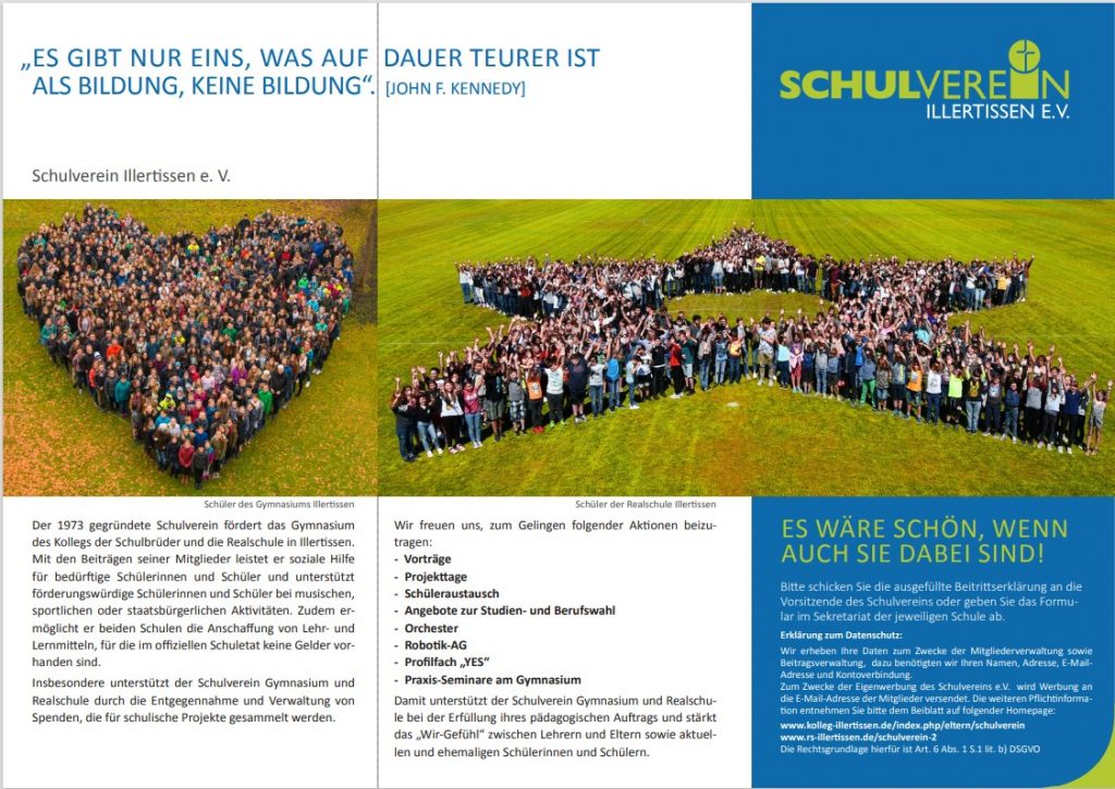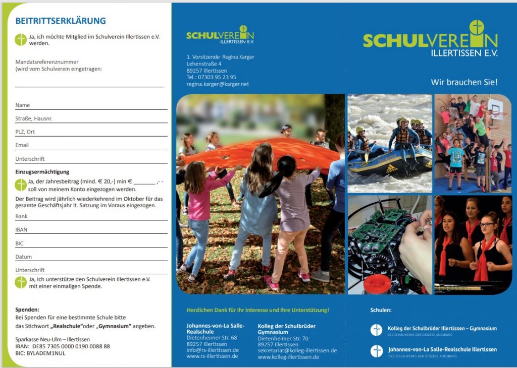 Der Schulverein wurde 1973 gegründet. Wir sind ein Förderverein für das Kolleg der Schulbrüder und die Johannes-von-La Salle Realschule in Illertissen. Gerne unterstützen wir unsere beiden Schulen wie folgt: